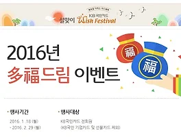 설맞이 국민카드 2016년 다복드림이벤트 진행중 (0) | 2016.02.13 |