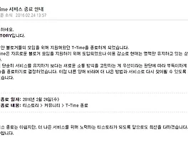 의미없는 티스토리 티타임 서비스종료 2월 24일 기준 (0) | 2016.02.25 |