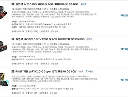 RTX2060 시리즈가 나오면서 RTX 시리즈 중에 가장 반응이 뜨겁습니다. 현재 나온 RTX 시리즈중에 가장 저렴하기 때문일 것 같습니다.