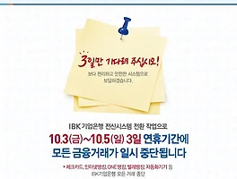IBK기업은행 10월 3일부터 3일간 영업중단 (0) | 2014.09.17 |